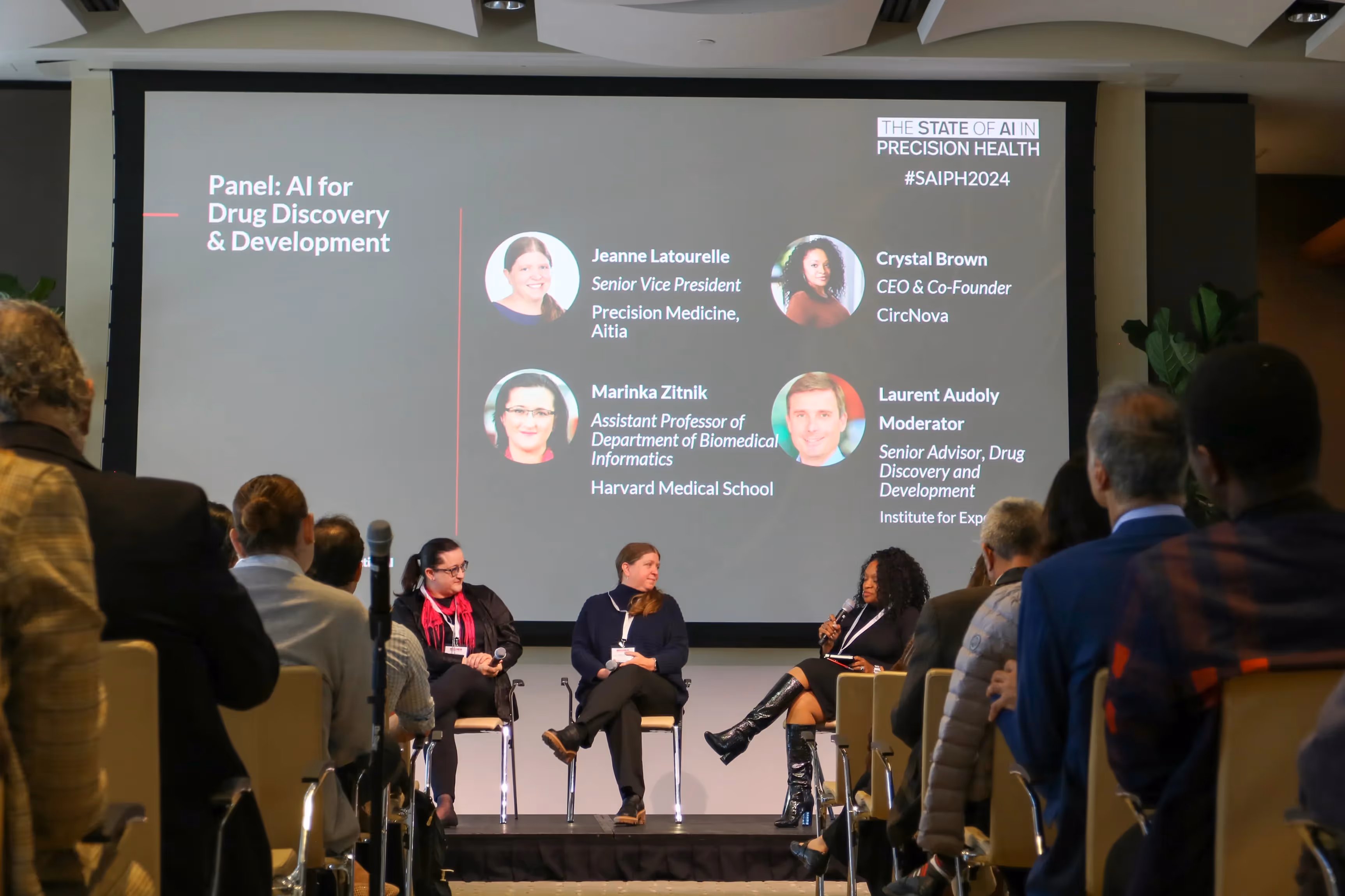 Some of these ideas were explored further in a panel moderated by Laurent Audoly, senior advisor of AI drug discovery and development at the Institute for Experiential AI. It included Jeanne Latourelle, senior vice president of precision medicine at Aitia, as well as Crystal Brown, CEO and co-founder of CircNova, and Marinka Zitnik, professor of biomedical informatics at Harvard Medical School.